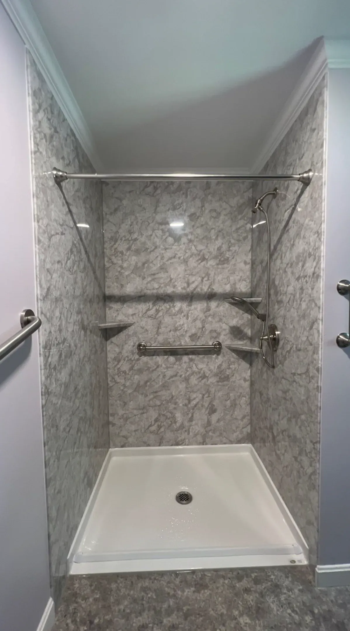 Our bath and shower systems are built with premium, engineered materials designed for durability, easy cleaning, and long-term performance. These non-porous, impact-resistant surfaces resist stains, scratches, and moisture while remaining warm and comfortable to the touch.