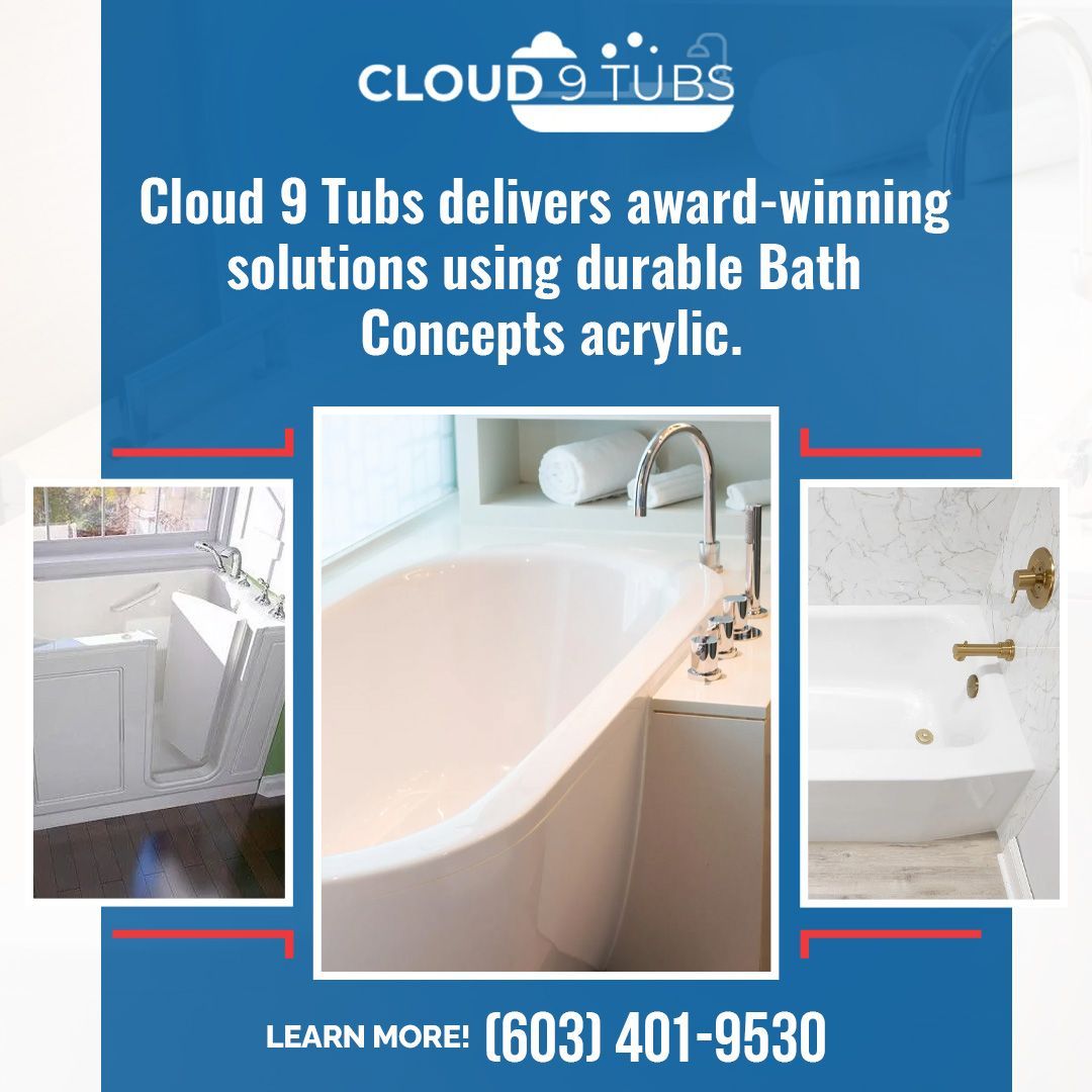 Cloud 9 Tubs exclusively installs Bath Concepts acrylic fixtures manufactured in the United States. These materials maintain structural integrity through New Hampshire's temperature fluctuations between humid summers and freezing winters. The non-porous surfaces resist cracking, peeling, and fading throughout decades of use.
