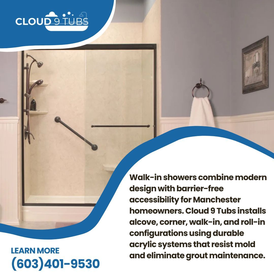 info@cloud9tubs.com for your free consultation. We serve Manchester, NH, and nearby areas with quality shower installations backed by our commitment to excellence.